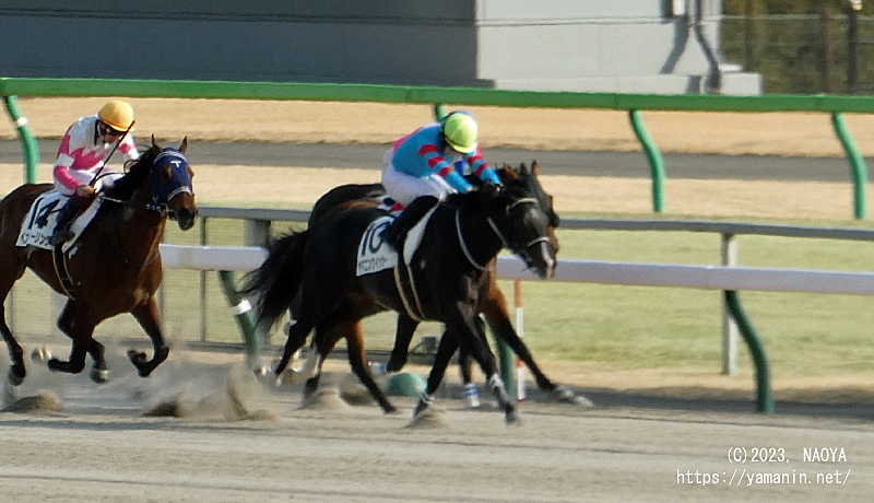 確勝を期したヤマニンクイッカーでしたが、先行した2頭がそのまま行ききり、末脚を伸ばしましたが差を詰めることができず、3着となりました。初勝利の時と同じように、あと少し!