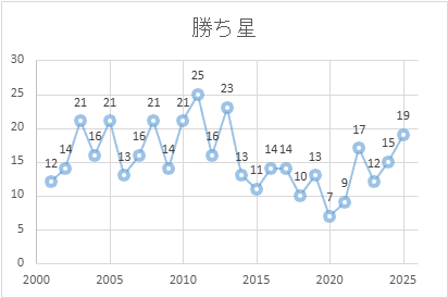 - 2025年度成績 19勝 (+2勝)